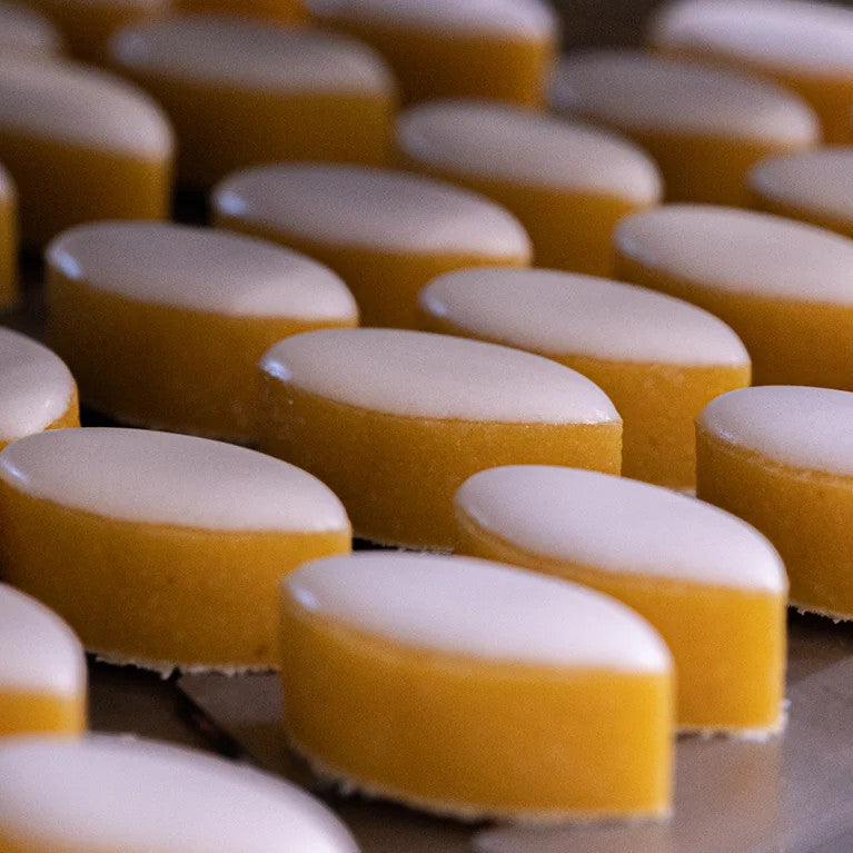 Roy René's calisson follows a centuries-old tradition, combining finely ground sweet almonds, Provençal melon and orange peel, all set on a bed of rice paper and coated with royal icing.